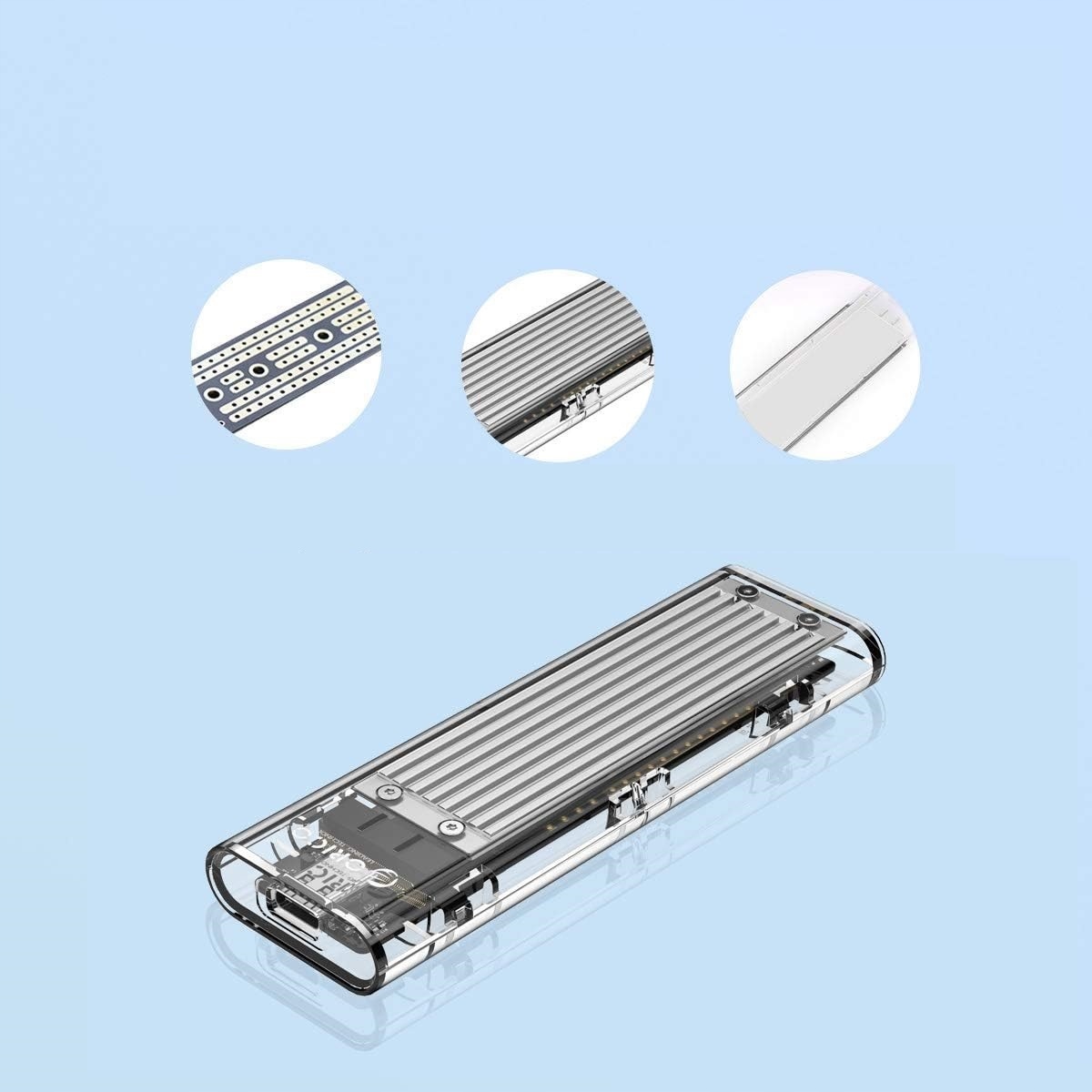 Откройте для себя новое измерение портативного хранилища с нашим прозрачным серебристым корпусом ORICO USB 3.1 Gen2, разработанным специально для твердотельных накопителей NVMe M.2 (M Key). Этот инновационный корпус обеспечивает молниеносную передачу данных со скоростью до 10 Гбит/с благодаря технологии UASP, что делает передачу файлов чрезвычайно быстрой и стабильной. Изготовленный из высококачественного алюминия и резины, он обеспечивает превосходный отвод тепла и защиту вашего диска, гарантируя надежность даже после интенсивного использования.