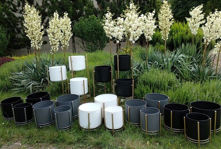 И ГОРШКИ С СЕРЕБРЯНЫМ ЦВЕТОМ НОЖЕК.