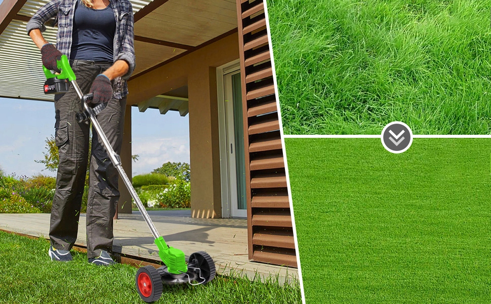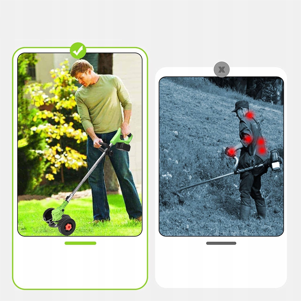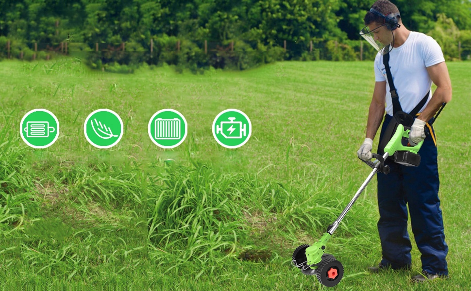 Батарея батарея легкая и простая в использовании. Внутренняя от того, является ли она домохозяйкой или старше, ее можно легко использовать. Когда угол резки может быть отрегулирован, мы добавили конструкцию двойного переключателя, которая будет активирована после нажатия с помощью торгового центра. безопасность. L. На головке косилки есть вращающийся раздел, чтобы предотвратить полеты и защиту безопасности пользователя.