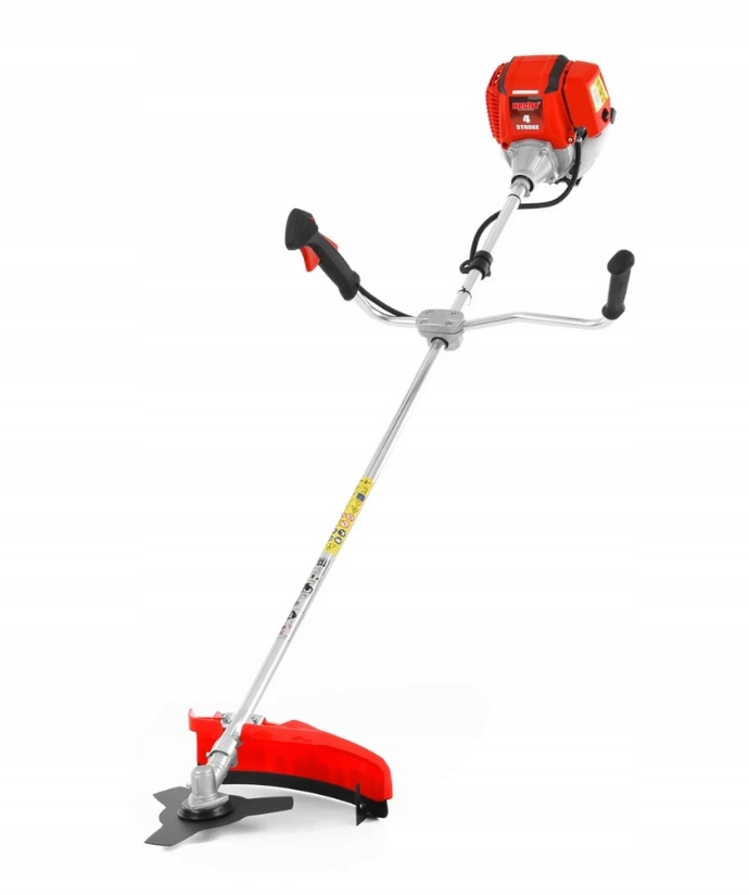 Машина сгорания файлов шириной 43 см. Четырехпрочный двигатель с емкостью 42,5 см3. Полу -аутоматическая разматывающаяся строка. Эргономичные ручки. 1,6 л.с.
