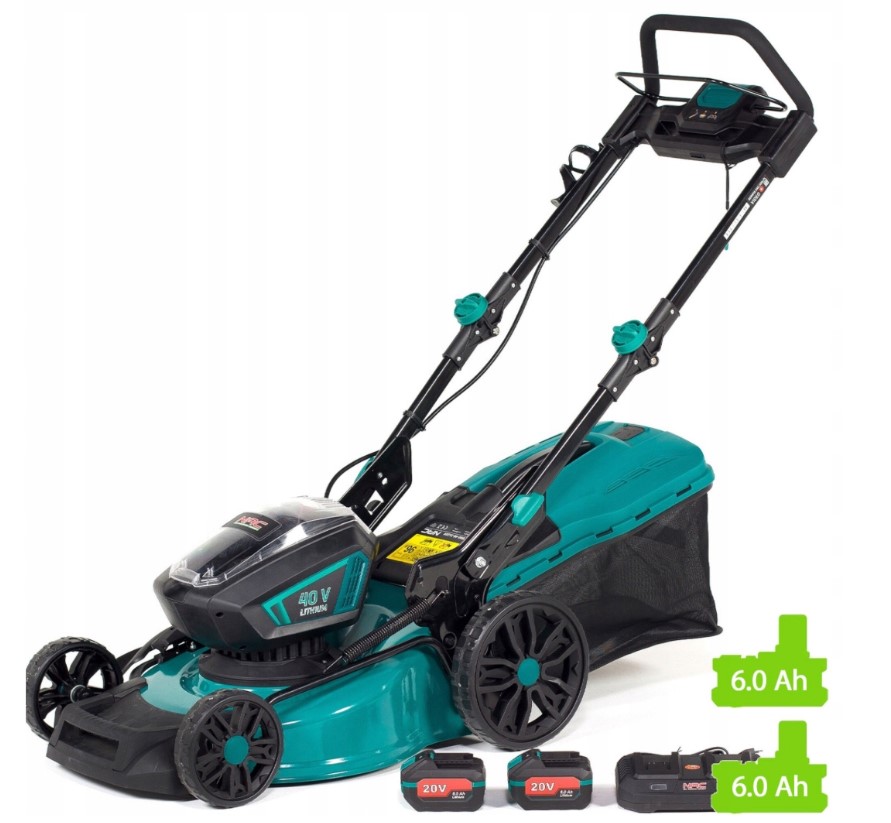 Косилка NAC LB-2B60-46-2X20V питается от 2 аккумуляторов 20 В и емкостью 6 Ач, время работы которого составляет примерно 18 минут на одном заряде. Они расположены в верхней части корпуса, что позволяет легко их снимать, заряжать или заменять. Питание от аккумулятора означает, что газонокосилку можно использовать практически где угодно.