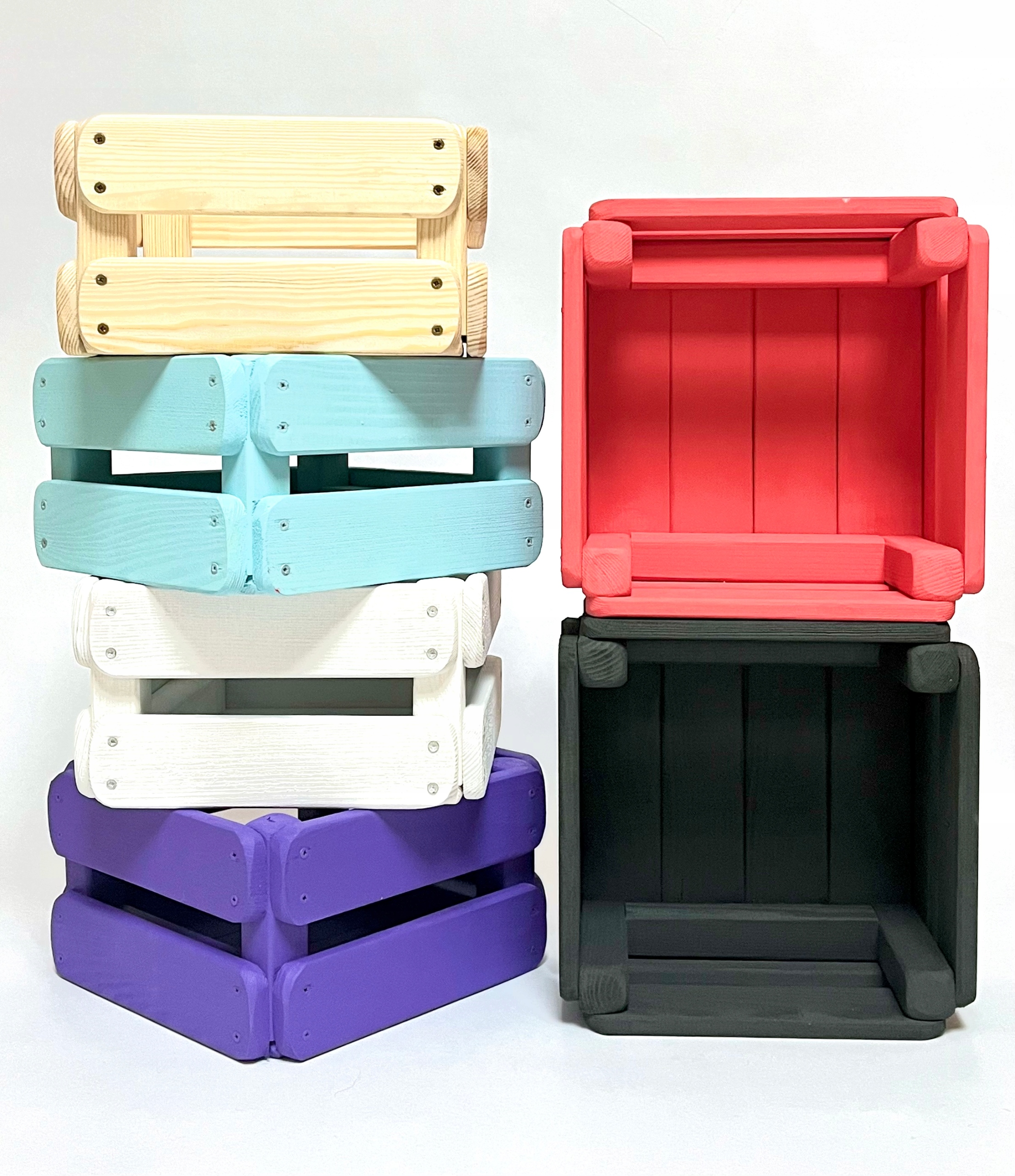 Все элементы отполированы, а значит, отсутствуют выступающие занозы и заусенцы.Винтовая конструкция без каких-либо гвоздей и скоб обеспечивает эстетичный внешний вид.