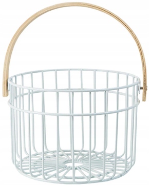 Она изготовлена из прочной металлической проволоки с порошковым покрытием. К корзине прикреплена подвижная деревянная ручка, облегчающая ее переноску.