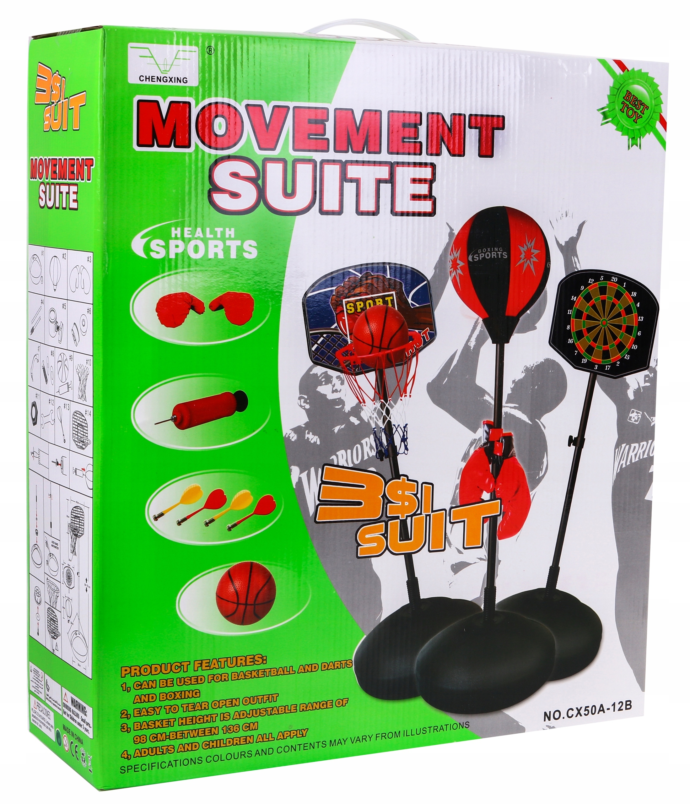 СПОРТИВНЫЙ НАБОР — идеальный способ провести свободное время для детей младшего и старшего возраста. В него входят аксессуары для игры в баскетбол, дартс и набор для бокса.