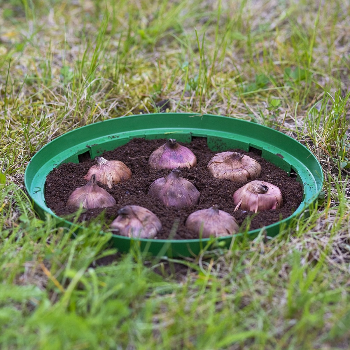Корзину следует поместить в землю вместе с луковицами. После периода цветения корзину следует выкопать, очистить и высушить. Корзину можно будет использовать повторно в следующем году.