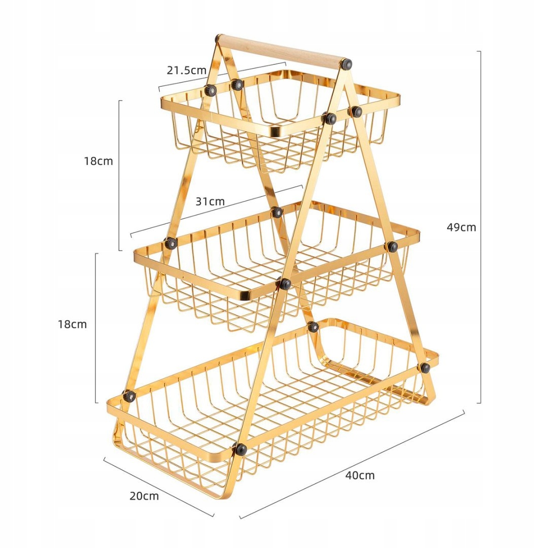 2-Х ЯРУСНАЯ КОРЗИНА ДЛЯ ФРУКТОВ И ОВОЩЕЙ МЕТАЛЛИЧЕСКАЯ КОРЗИНА, ЗОЛОТАЯ ПЛИТА, 3 УРОВНЯ