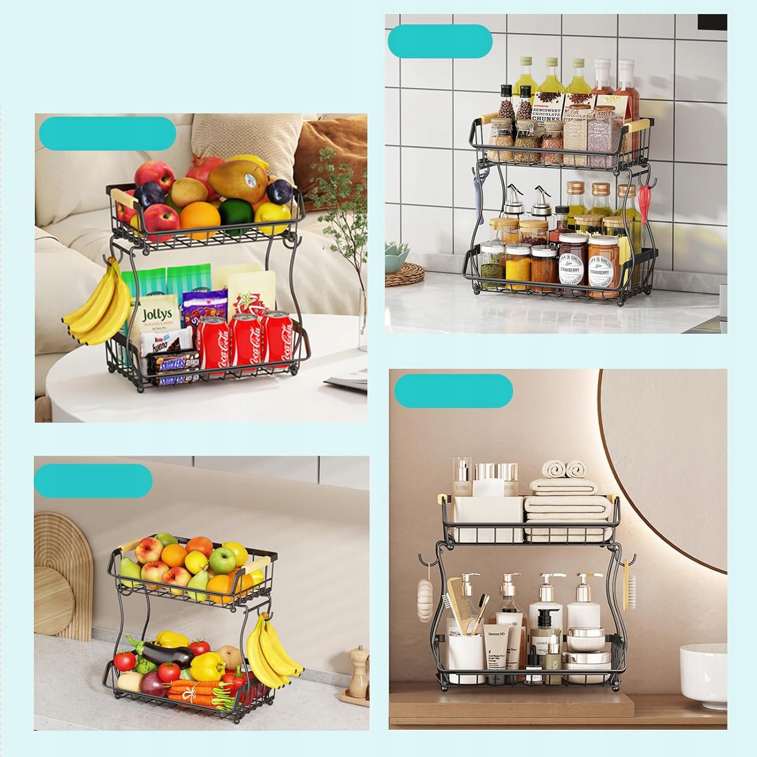 🍇🍇Большая вместимость: Изготовлен из толстой железной проволоки с пищевым покрытием, не содержащим BPA, этот kosz na owoce jest przeznaczony do przechowywania owoców, warzyw, chleba, przekąsek lub warzyw itp.