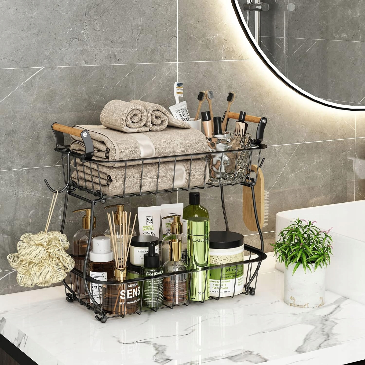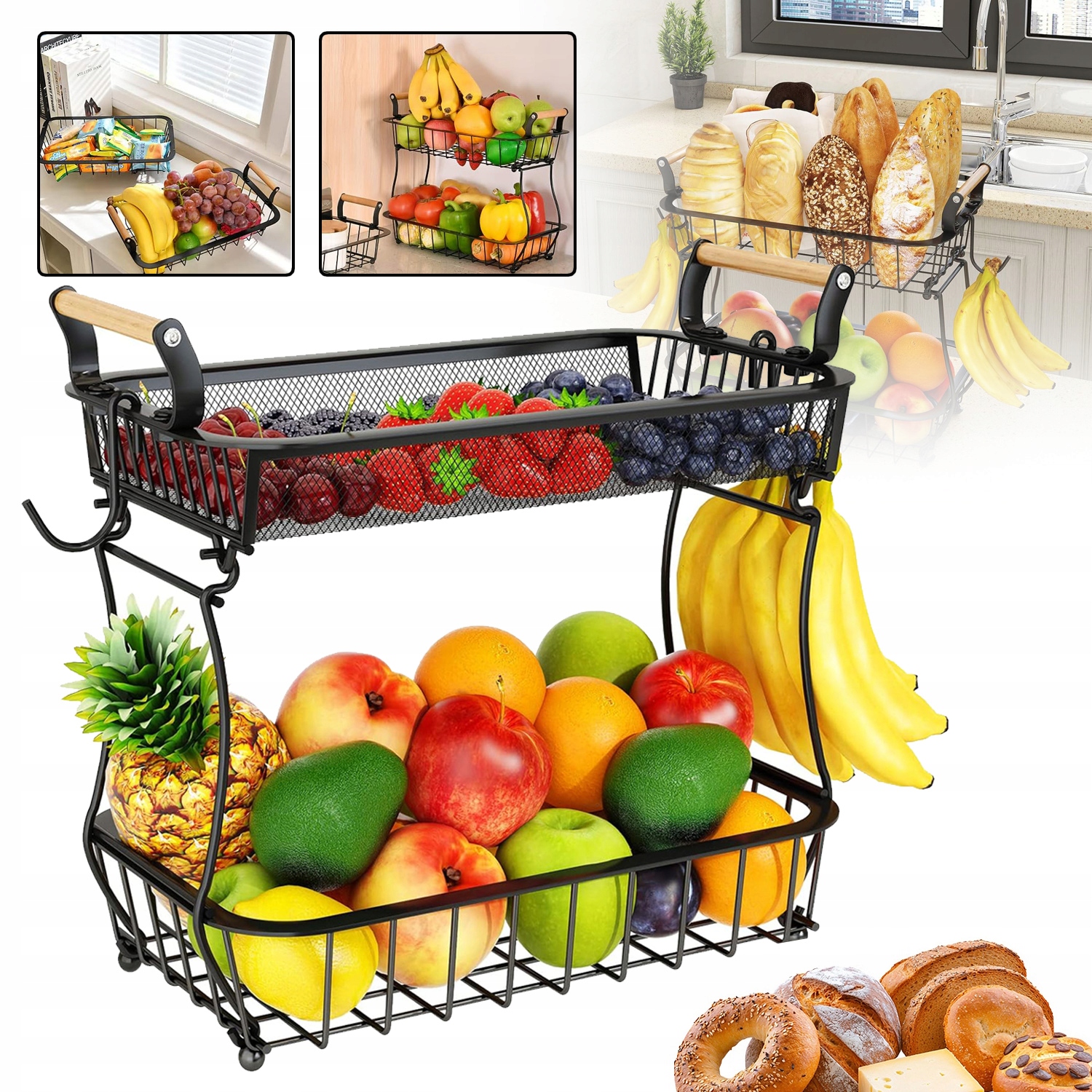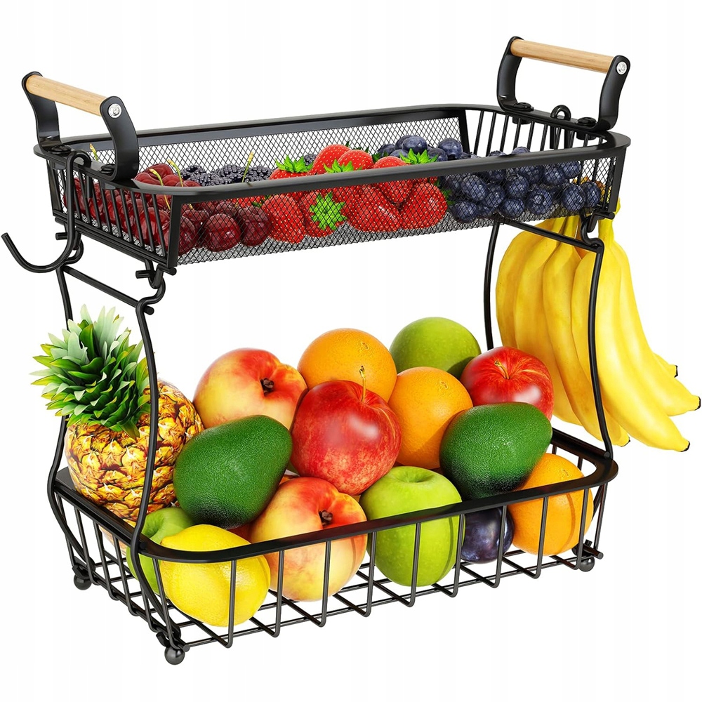 🍋🍋 2 вешалки для бананов: Две съемные вешалки для подвешивания бананов и винограда, идеальное место для хранения фруктов предотвращать появление синяков и сохранять фрукты свежими — отличное дополнение к этой корзине.