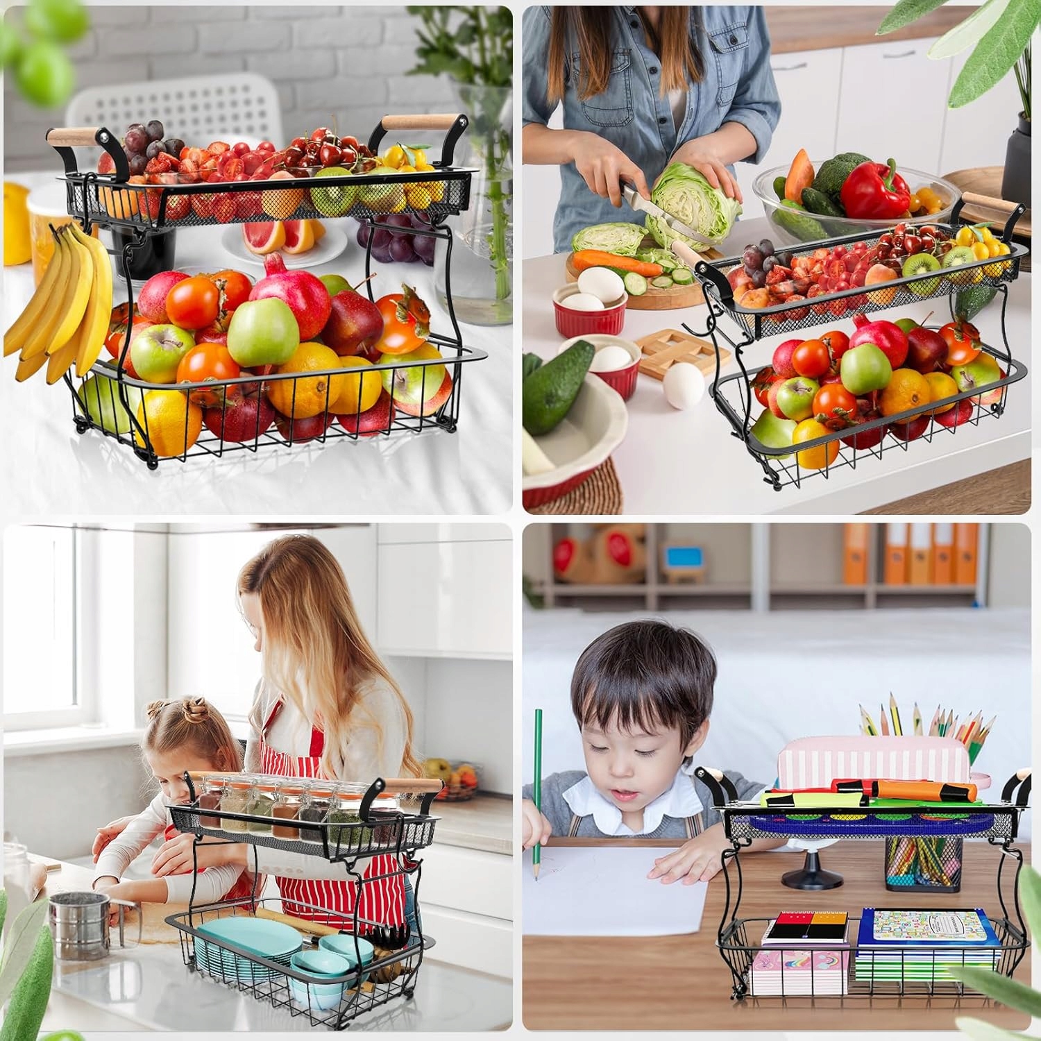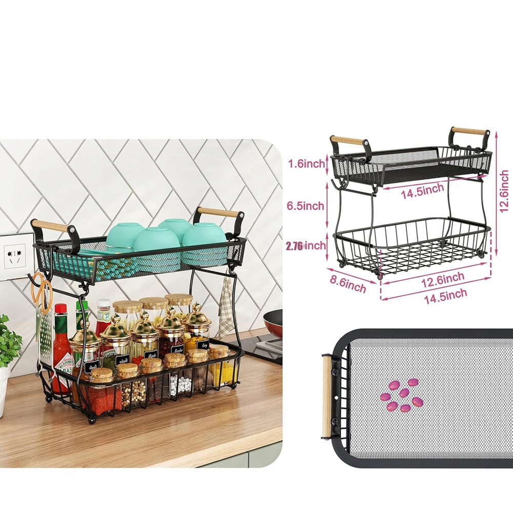 🍊🍊 Съемная конструкция: Вы можете использовать их как двухъярусную стойку или как две отдельные корзины. Они не только имеют приподнятые ножки, чтобы ваши фрукты оставались чистыми, но и обеспечивают превосходную сбалансированную поддержку.