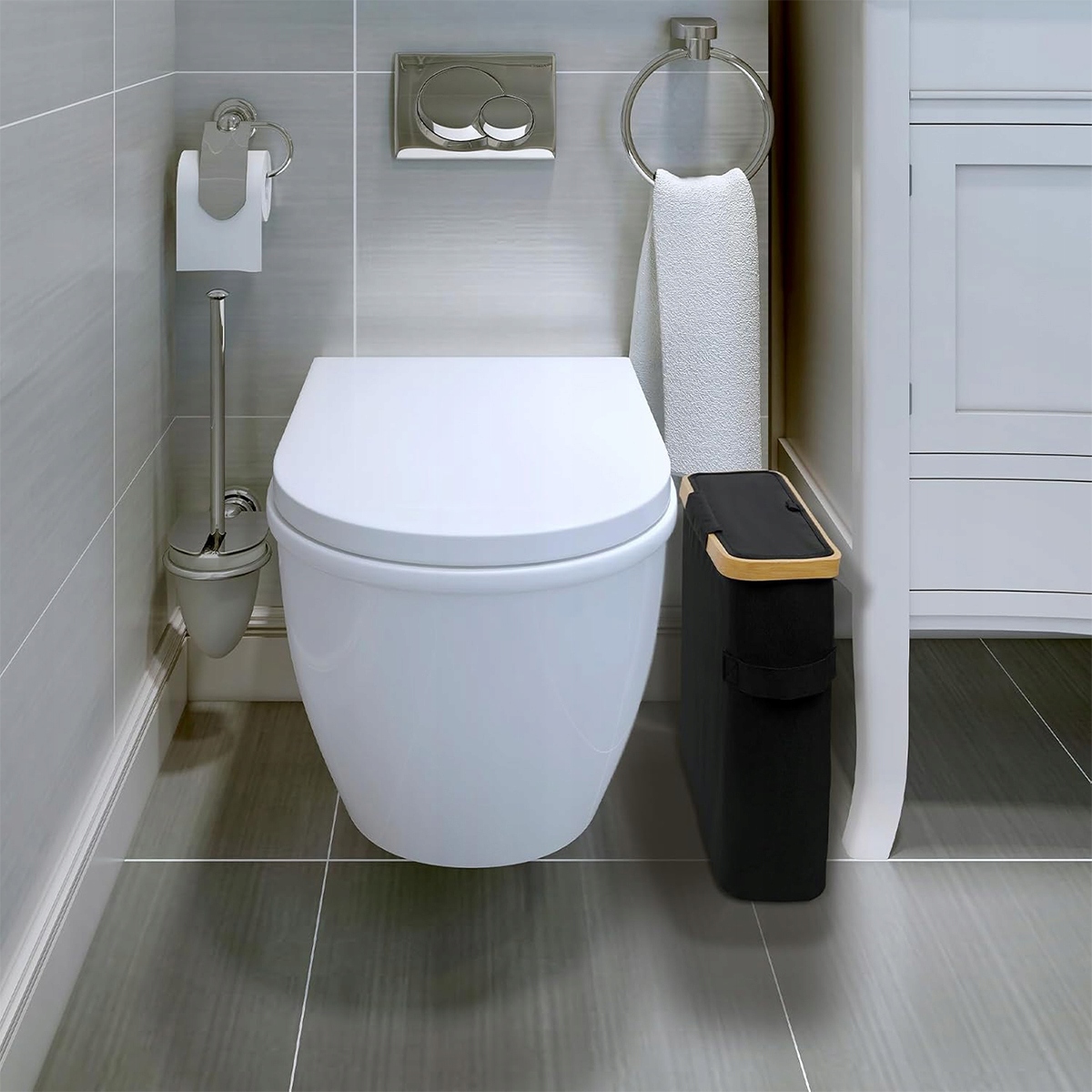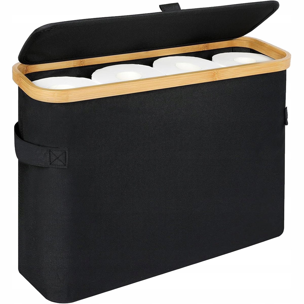 Корзина для туалетной бумаги с крышкой из бамбука, стоячей туалетной бумаги, организатором туалетной бумаги, запасной туалетной бумажной контейнером, 23L, черным h1>