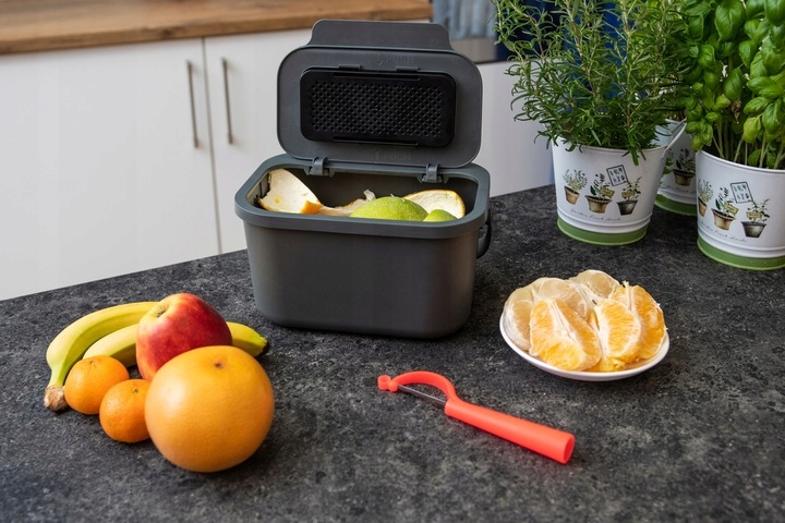 Благодаря своим маленьким размерам она идеально подходит для использовать как контейнер для кожуры, кофейной гущи и т.п. Закругленные края контейнера облегчают его очистку, поэтому использование одноразовых пакетов не требуется.