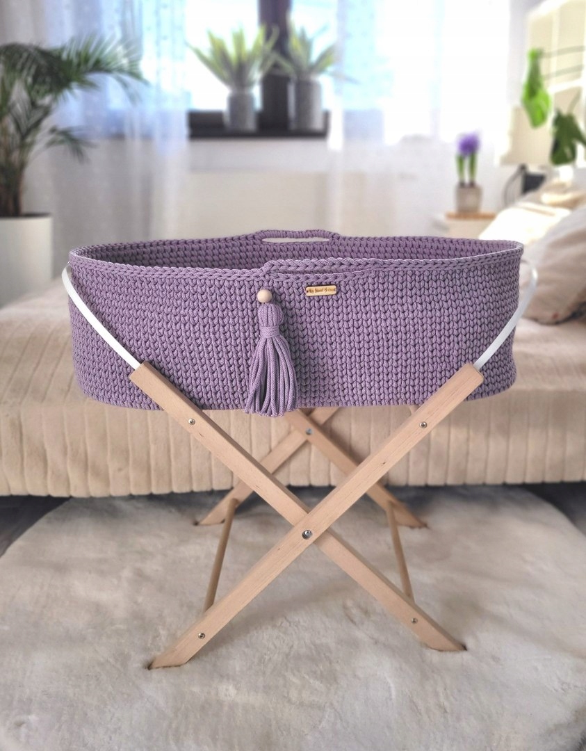 Корзина Моисея Бохо ручной работы с сиреневой стендом