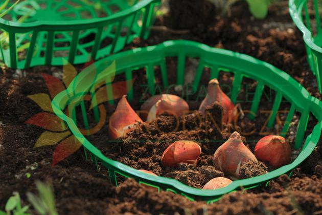 Ажурные корзиночки -крышки – идеальное решение для посадки луковиц цветов. Они защитят луковицы от мелких садовых вредителей, таких как мыши, слепушонки, и в то же время позволят легко оформить посадки.