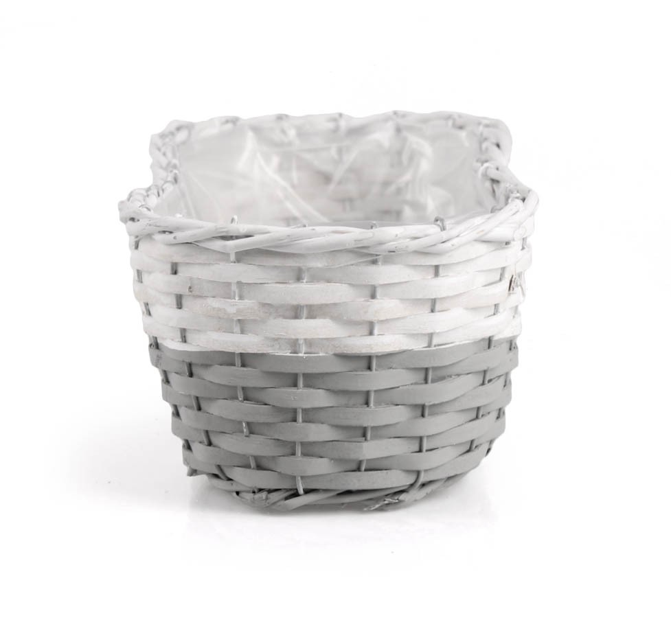 БЕЛО-СЕРАЯ ОВАЛЬНАЯ ПЛЕТЕННАЯ КОРЗИНА С ФОЛЬГОЙ ДЛЯ ЦВЕТОВ 35x19x13h см