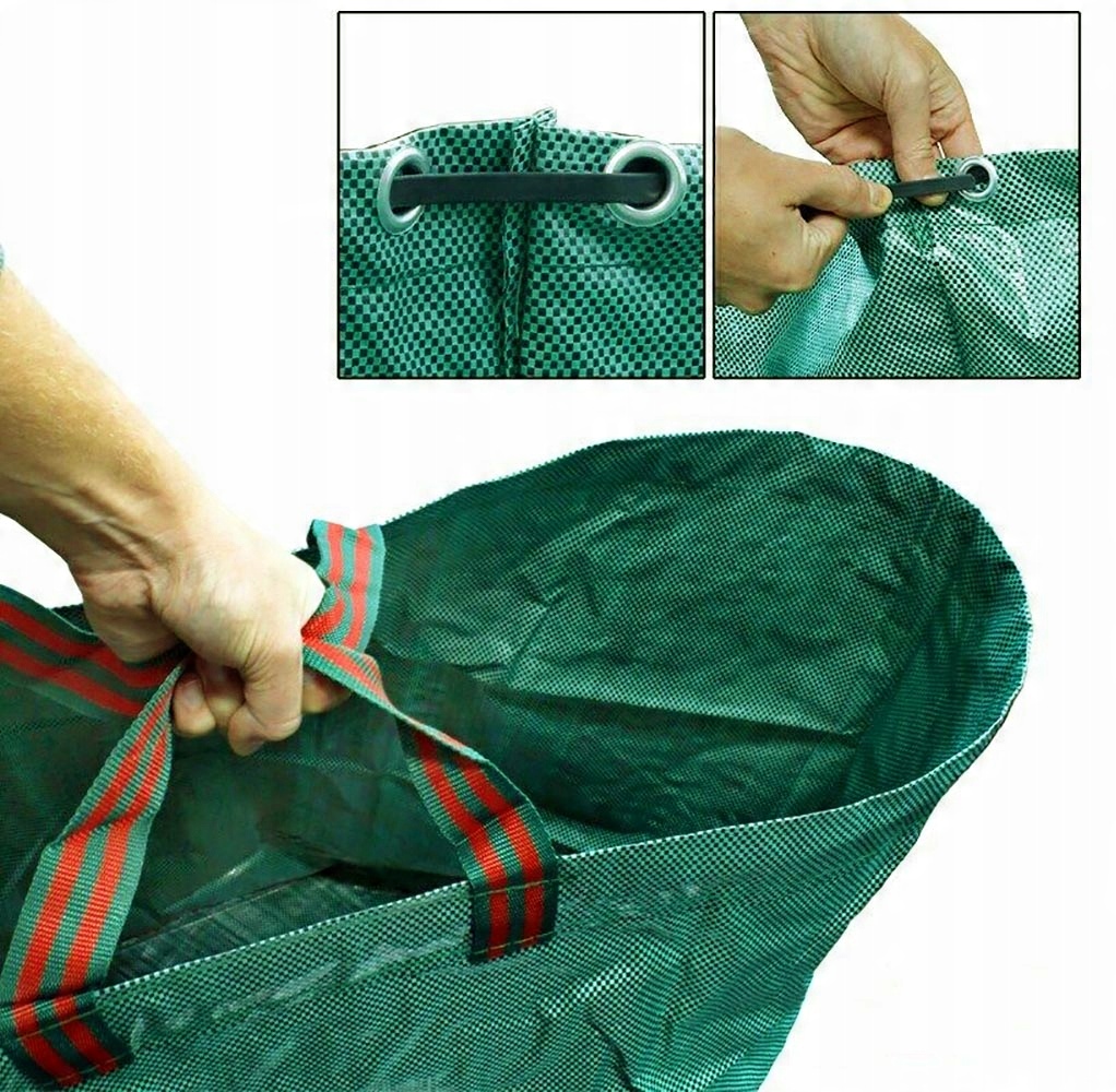 - дополнительно в комплект входит складное пластиковое кольцо который крепится в верхнюю часть мешка, придает жесткость мешку, предотвращает его складывание и облегчает загрузку зеленого мусора.