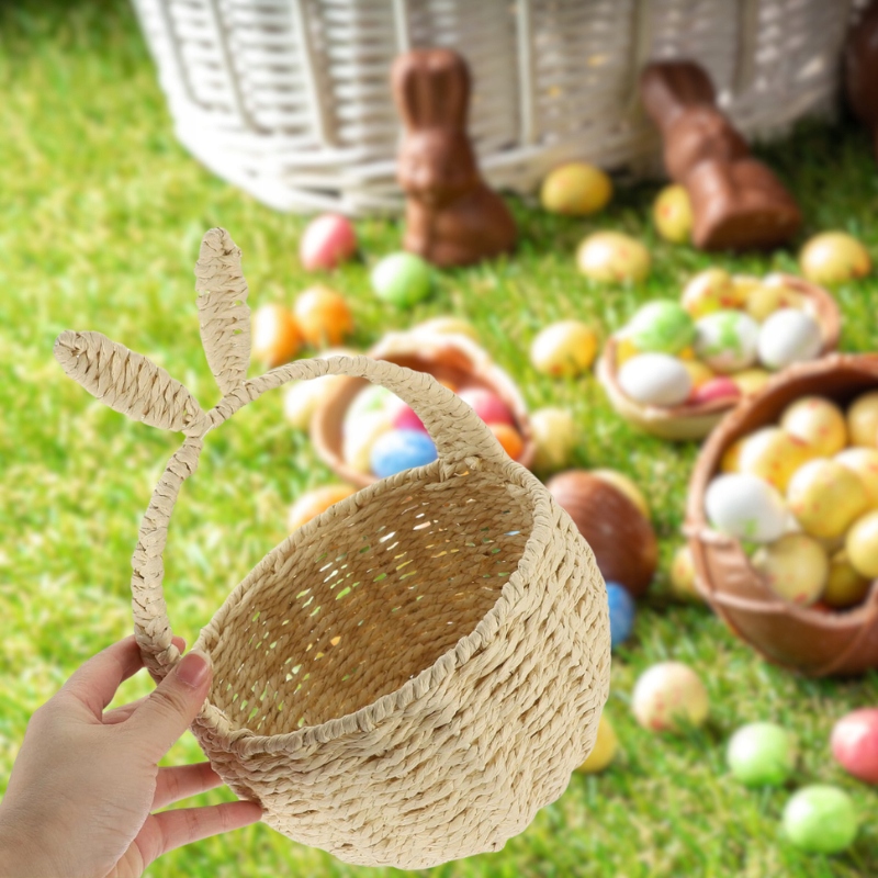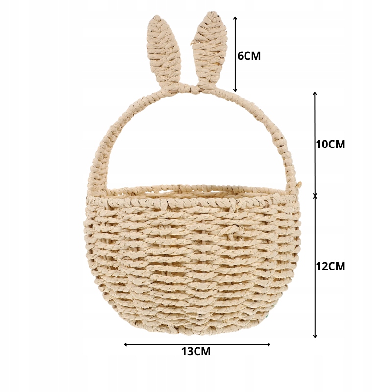 ✔koszyk с кроличьи пельмени - очаровательный пасхальный аксессуар из естественной оплетки. Его бежевый цвет и легкий дизайн делают его идеальным для хранения рождественских деликатесов и украшений. Очаровательные кроличьи уши дают ему праздничный характер.