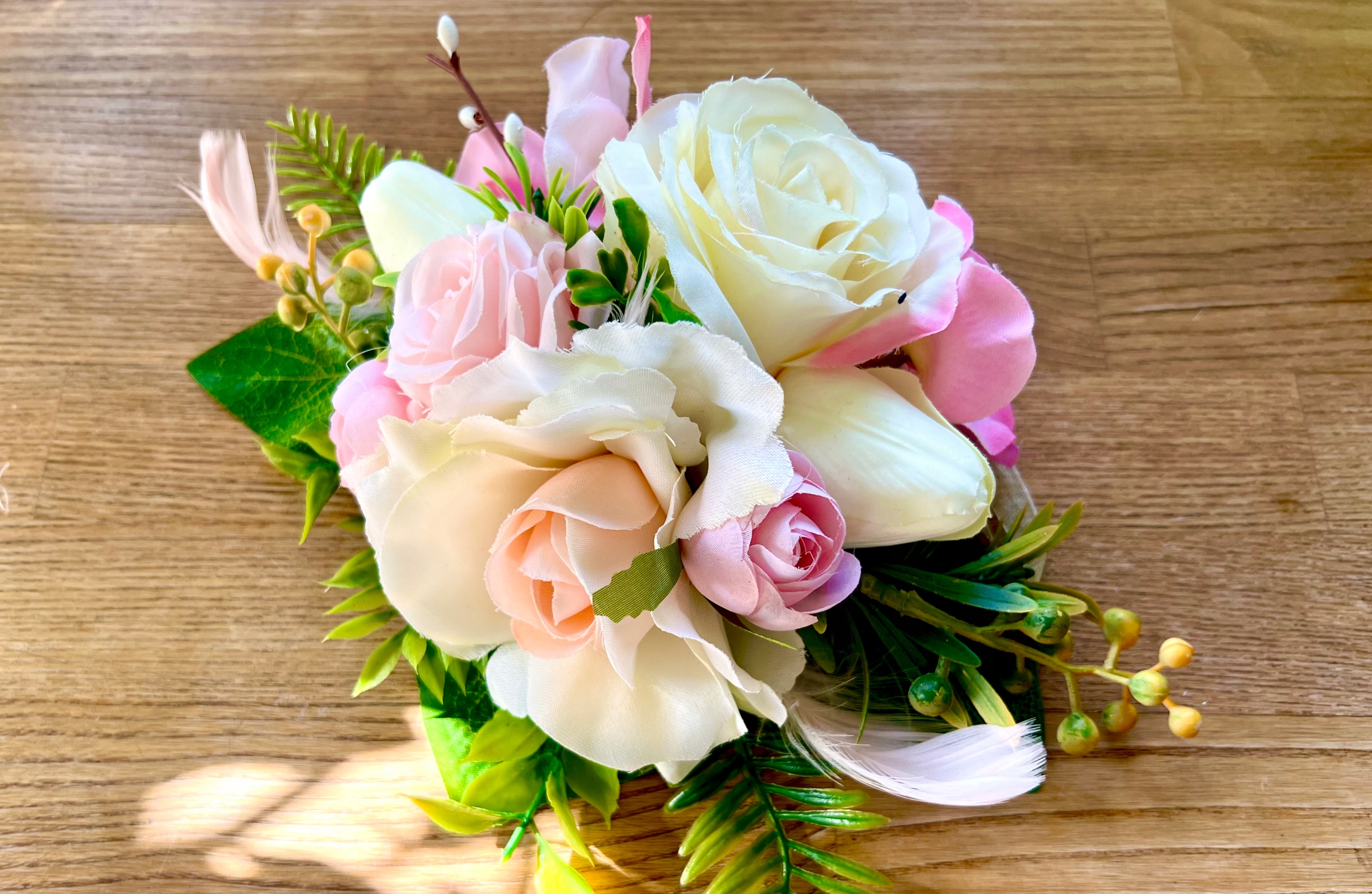 - богатый цветочный декор в цветах экрю и экрю розовый ,