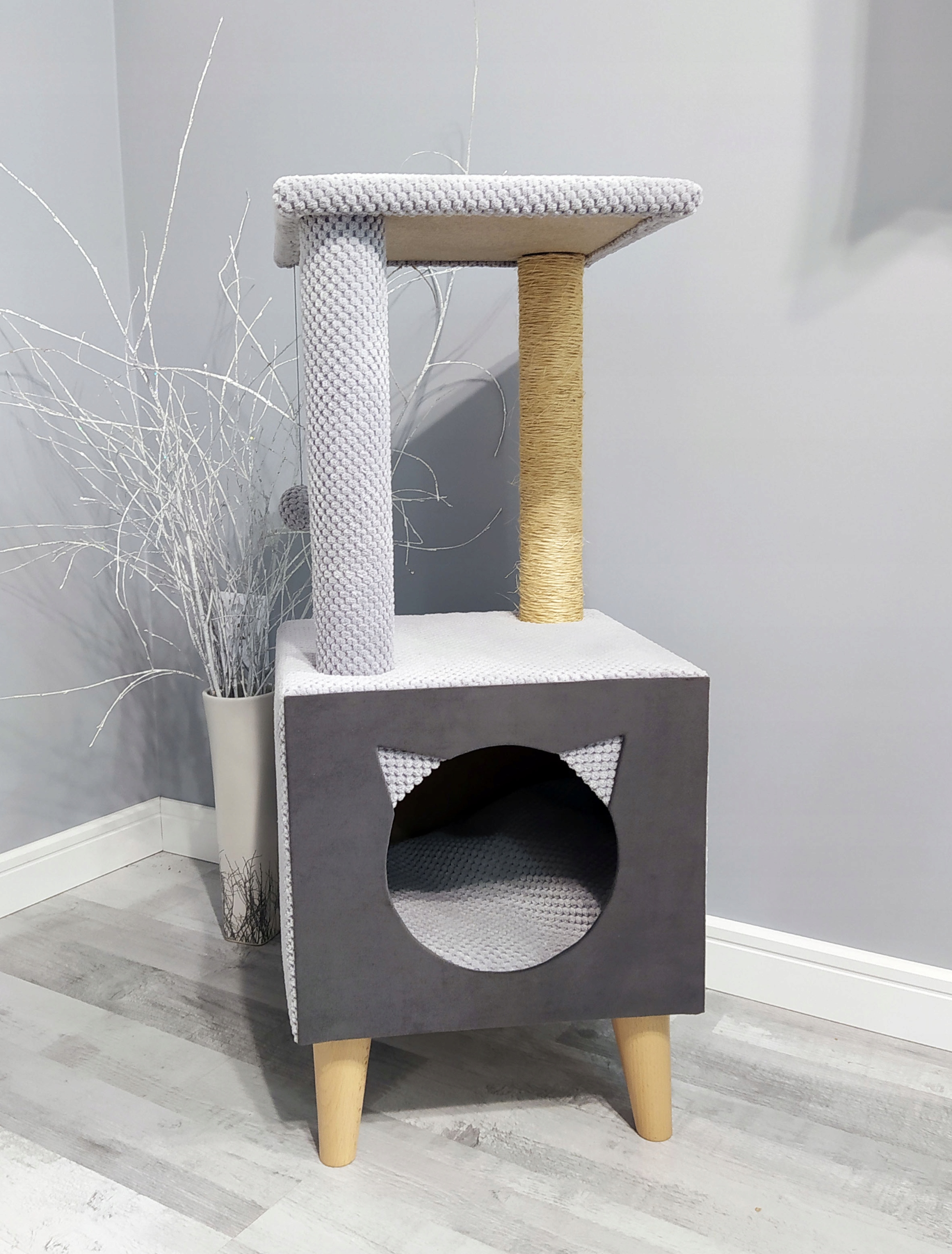 Удобная и просторная будка на нижнем уровне обеспечит кошке чувство безопасности и комфортное место для сна и отдыха.
