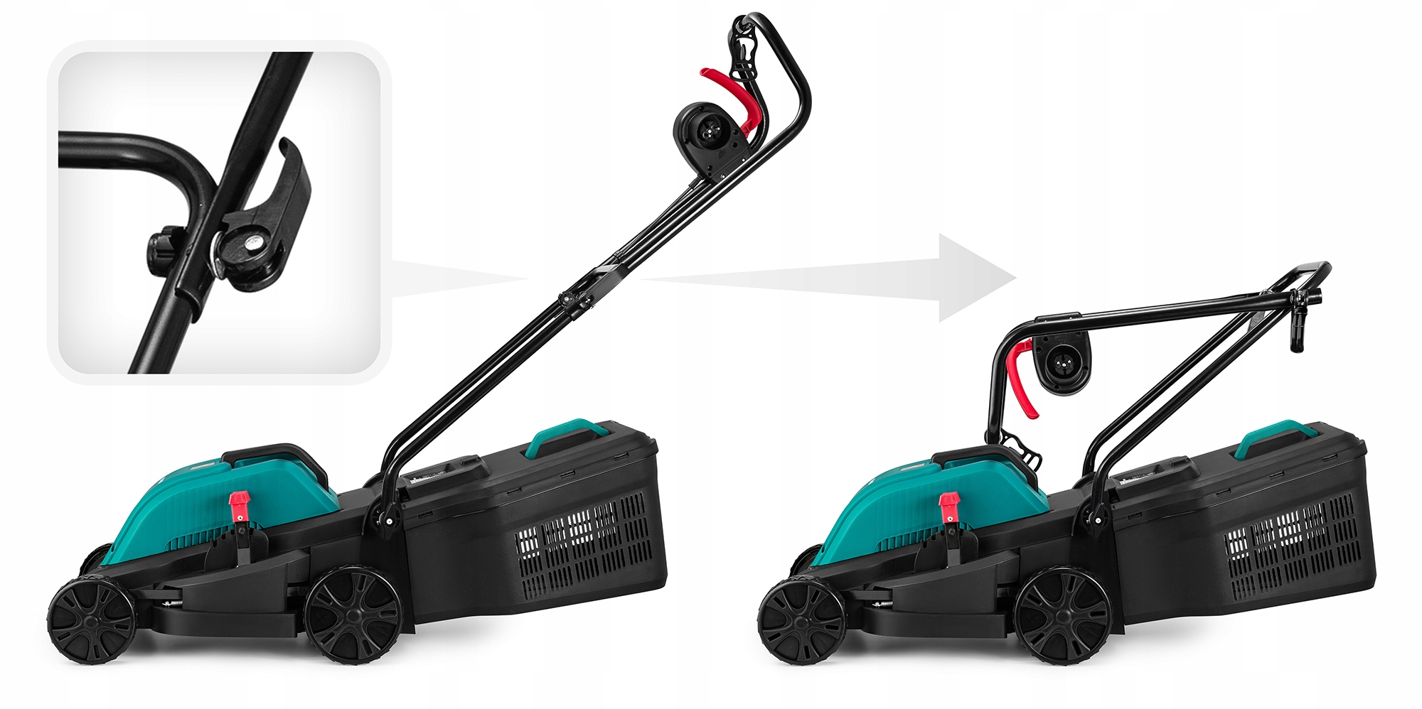 косилка электрическая | Проблема -free Индукционный двигатель | Ширина скашивания до 33 см | 2000W ESP | Разместная корзина 30l | 5-ступенчатая регулировка высоты косителя | два ножа включены Энергия -Страва Легкая сборка