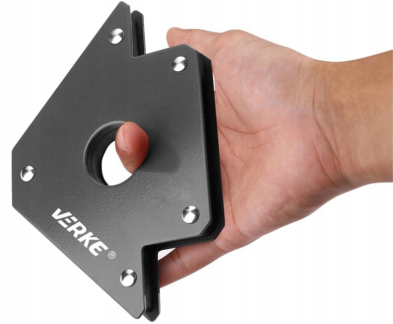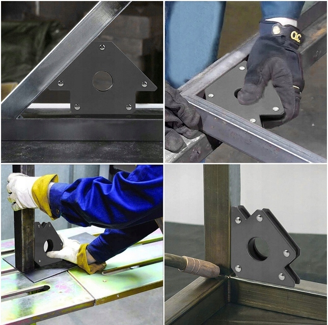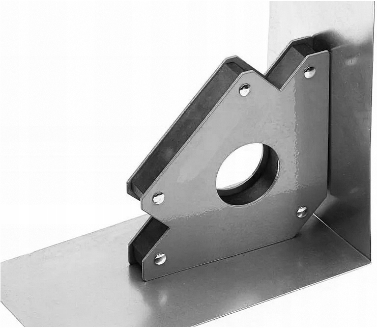 Магнитный уголок изготовлен из стального листа и сильных ферритовых магнитов. Позволяет точно соединять материалы под углами: 45°, 90° и 135°. Допустимая нагрузка магнита ок. 34 кг. Поверхность корпуса магнита покрыта порошковой краской. Предназначен для временного соединения металлических элементов при сварке, сверлении, покраске, работах, требующих использования обеих рук. Использование магнитного уголка позволяет свободно работать обеими руками и предварительно собирать соединяемые металлические элементы без помощи дополнительного человека.