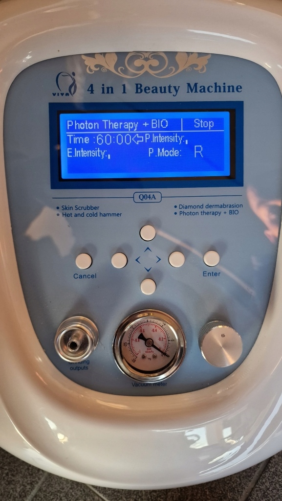 У меня ПРОДАЕТСЯ VIVA Q04A КОСМЕТИЧЕСКАЯ КОМБИНАЦИЯ 4 В 1 КРАСОТА МАШИНА ПИЛИНГ ДЕРМАБРАЗИЯ ФОТОННАЯ ТЕРАПИЯ УЛЬТРАЗВУКОВАЯ ТЕРАПИЯ НОВАЯ МАШИНА, НЕИСПОЛЬЗОВАННАЯ, 100% ФУНКЦИОНАЛЬНАЯ. СОСТОЯНИЕ ПРЕКРАСНО ВИДНО НА ФОТО, ДОБАВЛЕННЫХ НА АУКЦИОН. ПРОДАЮ ТОВАР ПО ФОТОГРАФИЯМ.