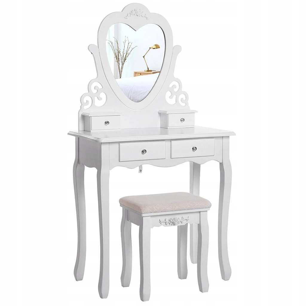КОСМЕТИЧНА ТУФКА БІЛЕ СЕРДЕЦЕ З ДЗЕРКАЛОМ + ТАБУРЕТ