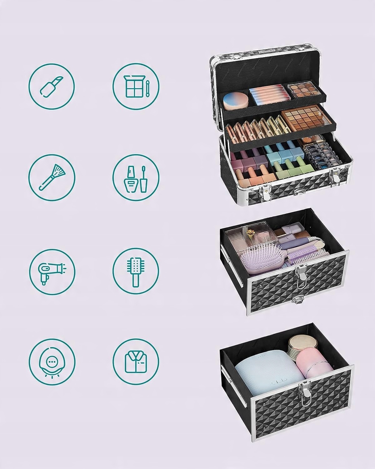 Идеально подходит как на работе, так и дома для хранения косметики, макияжа и парикмахерских принадлежностей.