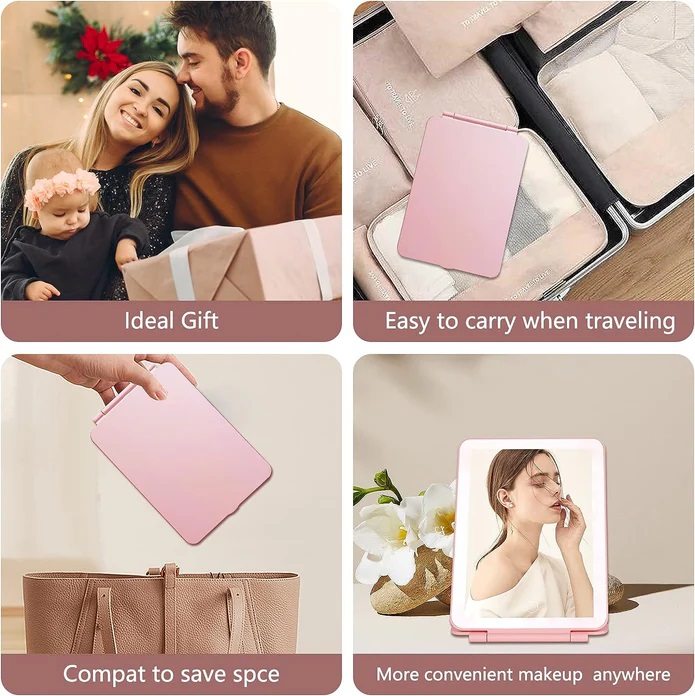 КОСМЕТИЧНЕ ДЗЕРКАЛО ДЛЯ МАКІЯЖУ З СВІТЛОДІОДНИМ ПІДСВІТЛЕННЯМ, СКЛАДНЕ, ДОРОЖНЕ