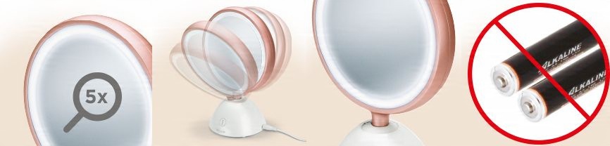 Нормальное и 5-кратное увеличение для большей гибкости при нанесении макияжа и уходе за кожей.