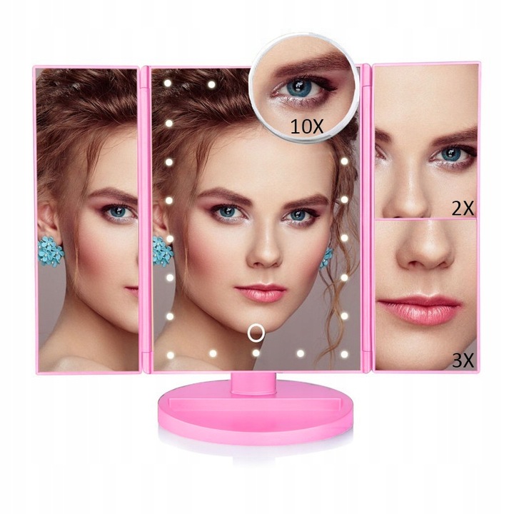 КОСМЕТИЧНЕ ДЗЕРКАЛО З ПІДСВІЧУВАННЯМ, СКЛАДНЕ 22 LED, USB zoom 2X 3X
