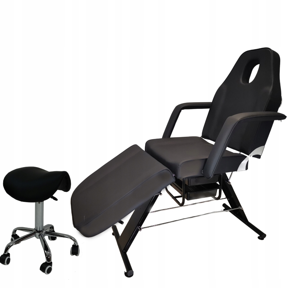 КОСМЕТИЧНЕ КРІСЛО З ПІДНОСОМ ЧОРНИЙ ТАБУРЕТ СІДЛО