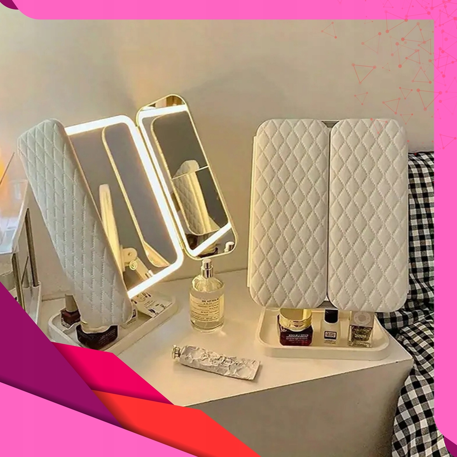 Косметическое зеркало для освещенного макияжа складывание светодиодного увеличения h1>
