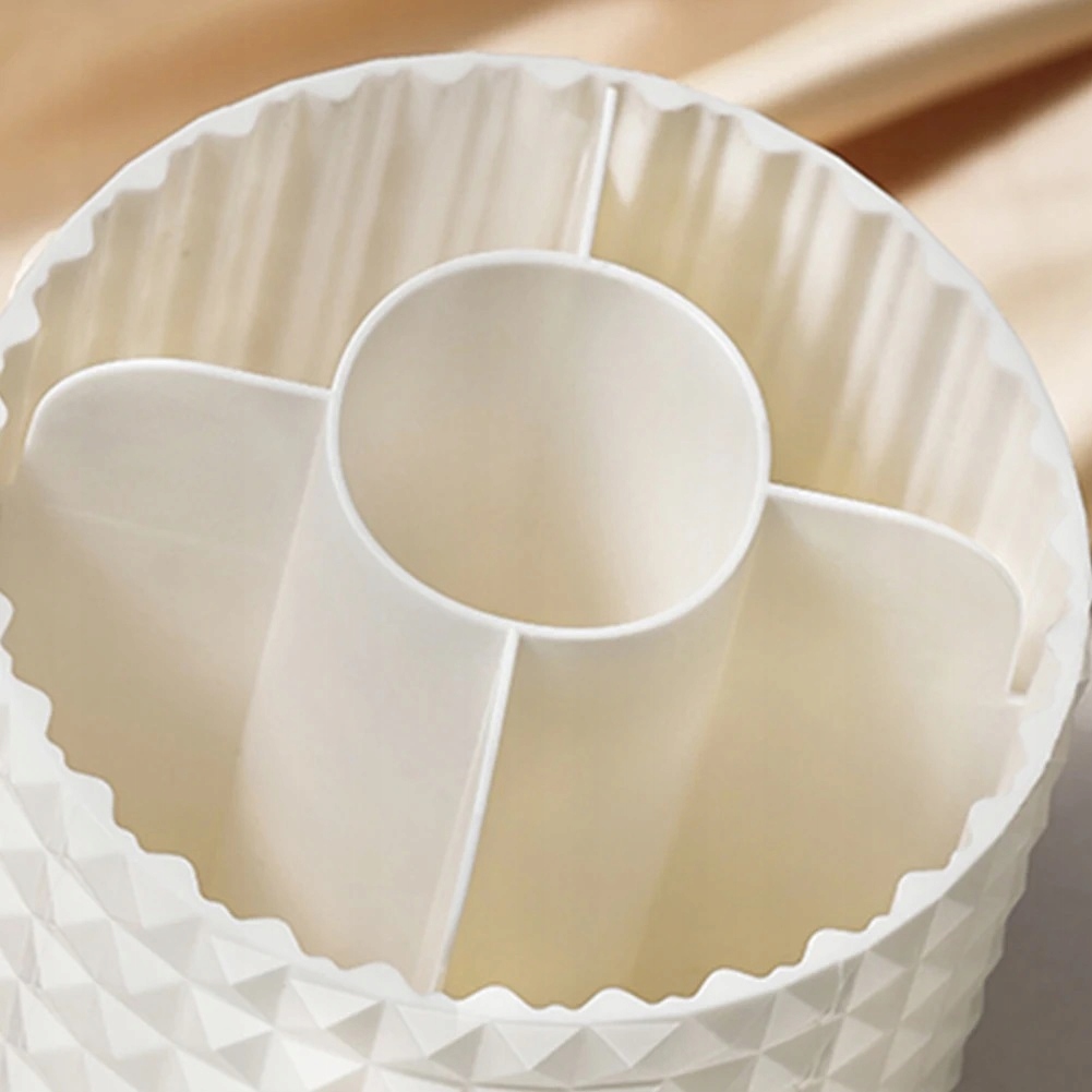 Вращающаяся на 360° конструкция органайзера является ключевой особенностью, которая гарантирует легкий доступ ко всем кистям и косметике. Благодаря этой инновационной функции вы экономите драгоценное время при ежедневном макияже, избавляя от необходимости искать сумку или контейнеры. Кроме того, органайзер также является эстетическим украшением вашего пространства, придающим ему стиль и элегантность.