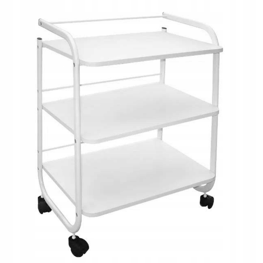 Практичный белый косметический столик на колесиках. Это один из основных элементов оснащения салонов красоты, массажных салонов, тату-салонов и парикмахерских.