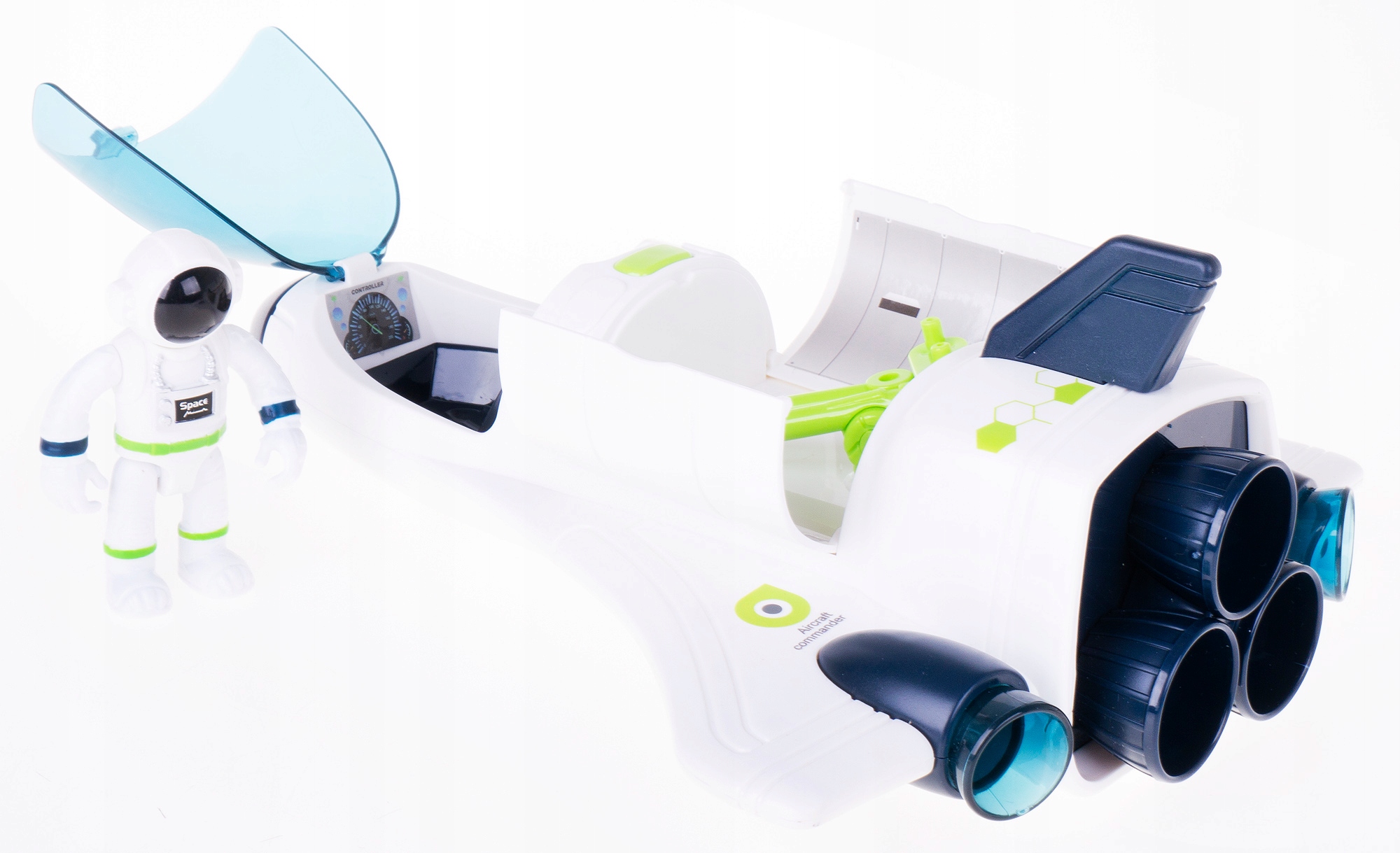 Шаттл выполнен из прочного пластика на колесах с открывающимся отсеком и кабиной для космонавта. В открывающейся камере находится складной кронштейн со стрелой, к которой можно прикрепить космонавта.