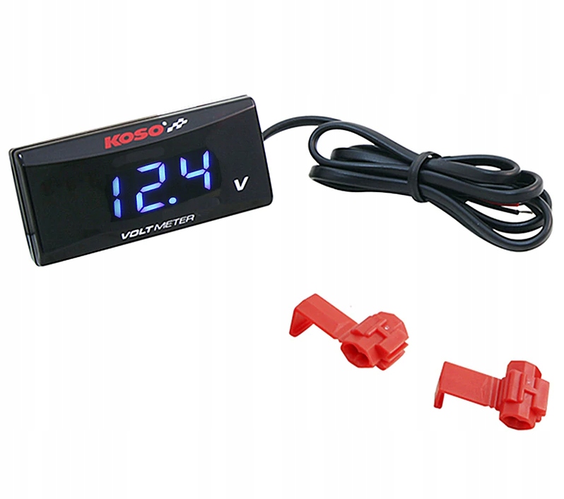 KOSO LCD LED ТОНКИЙ ВОЛЬТМЕТР ЦИФРОВОЙ ИЗМЕРИТЕЛЬ НАПРЯЖЕНИЯ МОТОЦИКЛ СИНИЙ