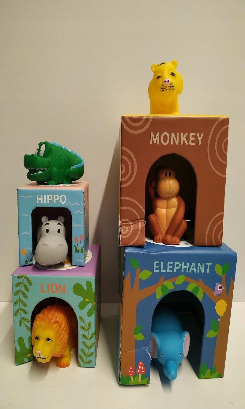 в картонном кубе 4x (дом), 6x резиновый животный