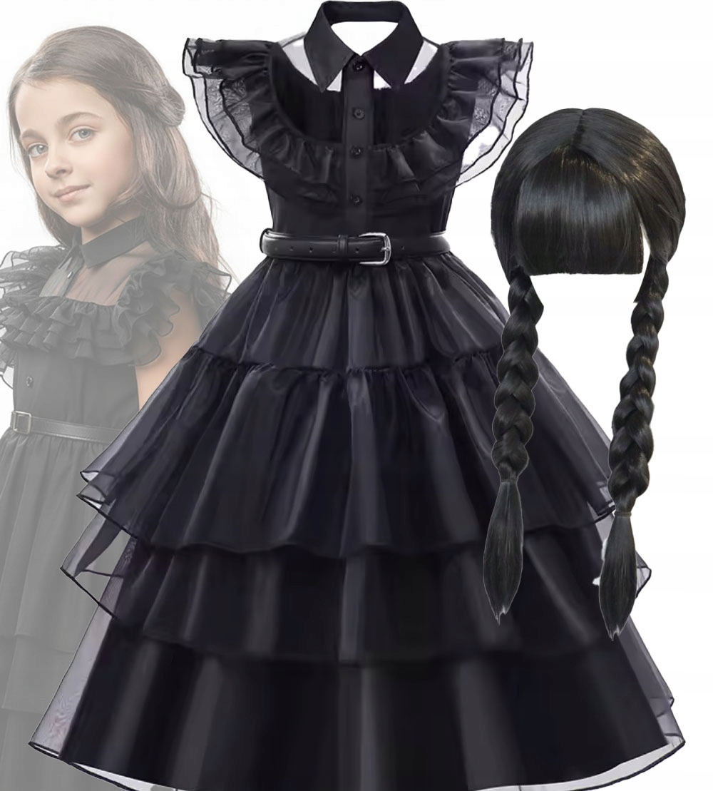 КОСТЮМ 140 / 146 НАРЯД + ПАРИК ПЛАТЬЕ ПЛАТЬЕ СРЕДЫ АДДАМС НАряд