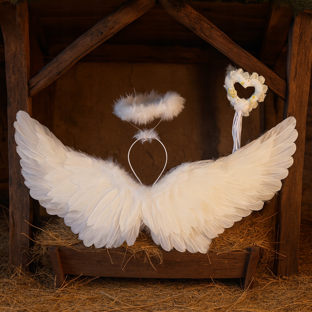 Ангельский наряд для мяча с мячом Set White Wings Aureola Angel Wand