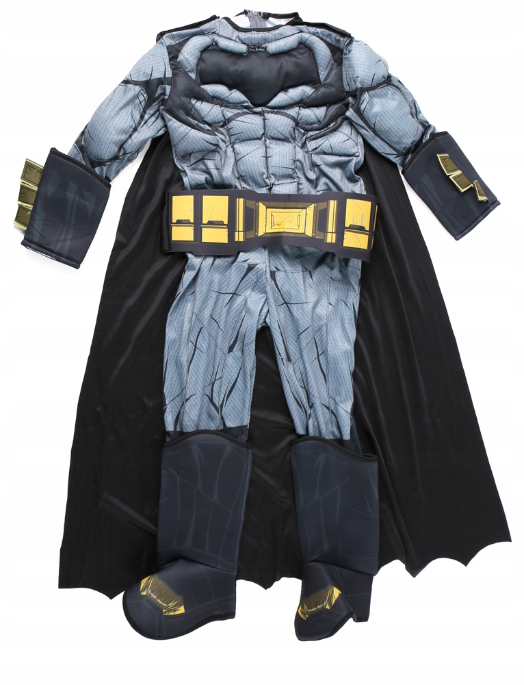 Этот костюм Бэтмена - идеальный выбор для каждого маленького героя, который мечтает о том, чтобы вступить в роль Темного Рыцаря! Благодаря многочисленным пенопластовым начинкам на туловище, костюм придает форме чрезвычайно мускулистый вид, который добавляет реалистичный характер, и привязанный пояс подчеркивает внешний вид героя