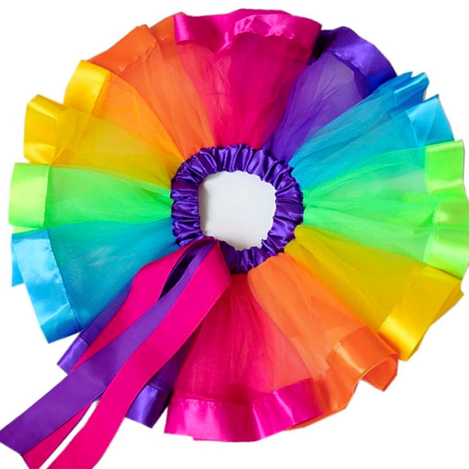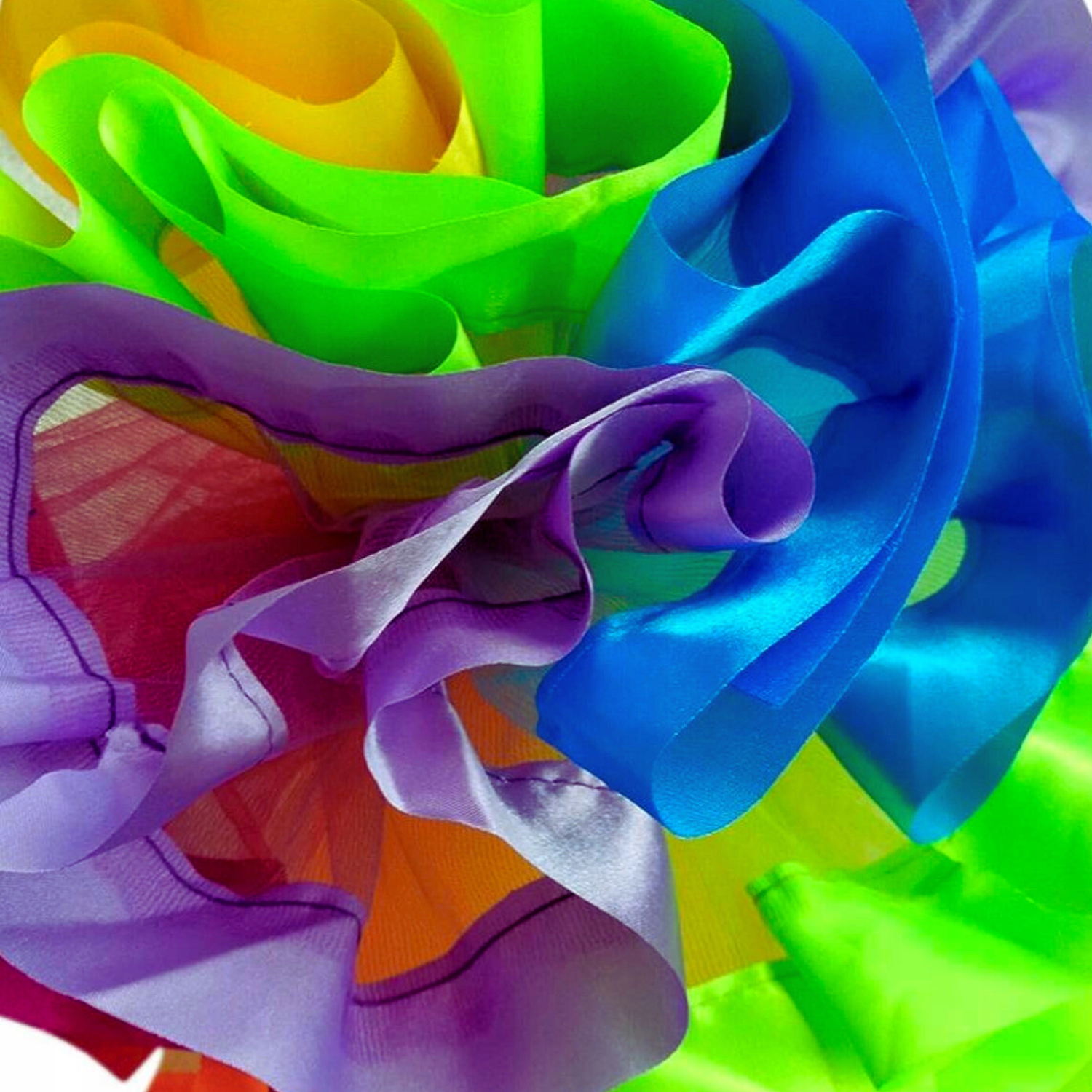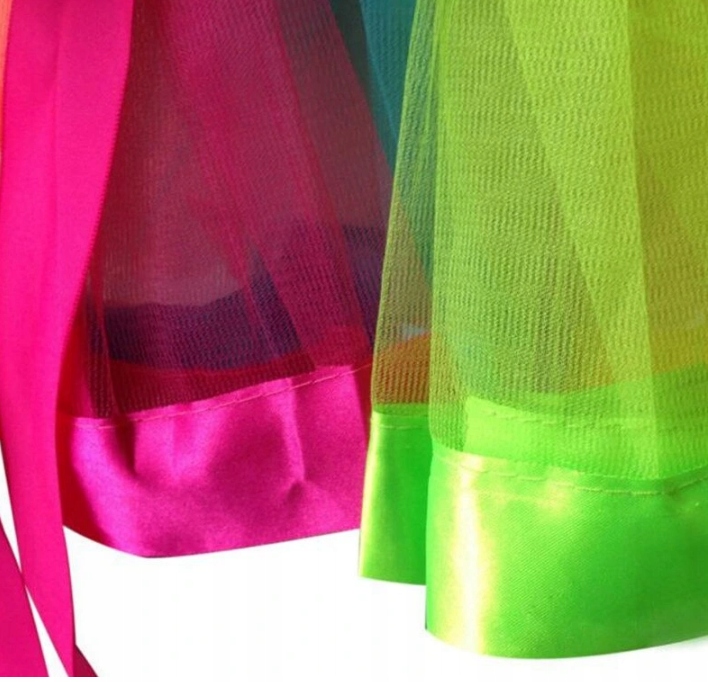 Юбка-радуга состоит из множества полосок тюля, связано на резинке и отделано атласной лентой, есть подкладка. Юбка на резинке по талии, не стесняет движений.