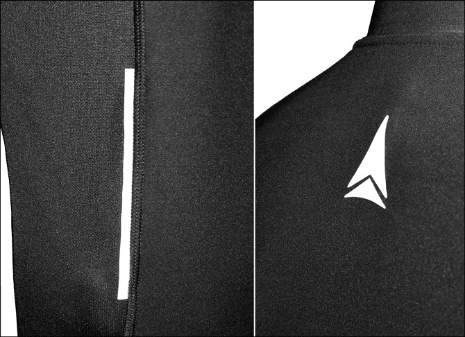Светоотражающие элементы по бокам толстовки, на спине и на штанах повышают заметность и безопасность пользователя во время тренировок в условиях ограниченной видимости