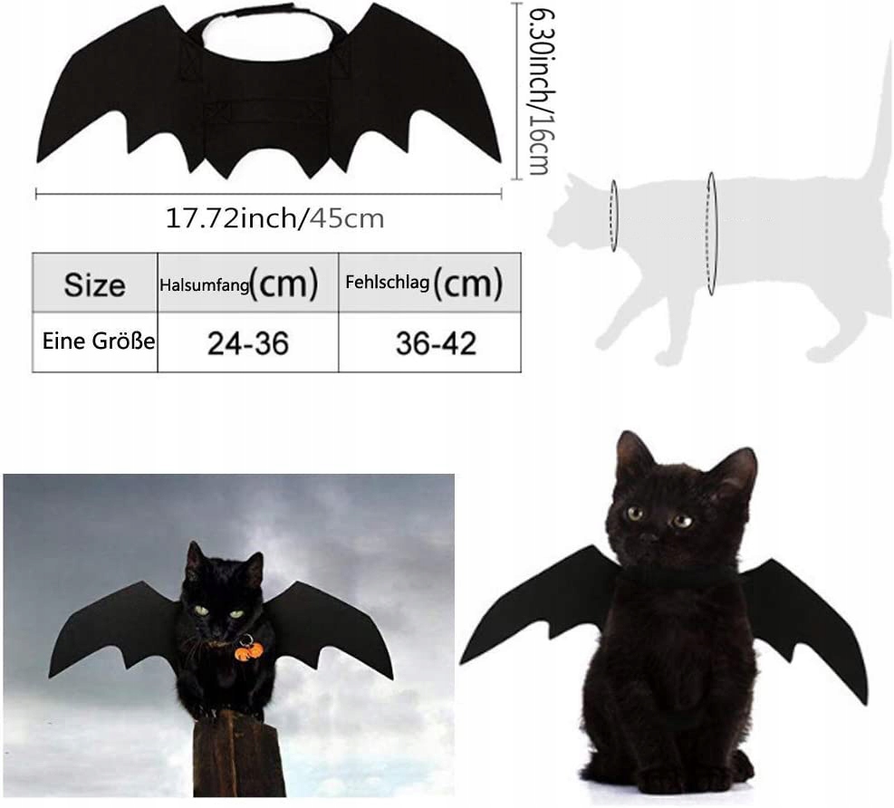 КОСТЮМ ДЛЯ СОБАКИ ТА КІШКА НА ХЕЛЛОВІН, КРИЛА КАЖАНА, МИЛИЙ ДЕКОРАТИВНИЙ