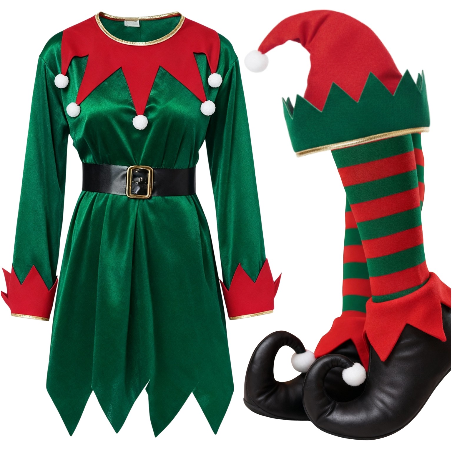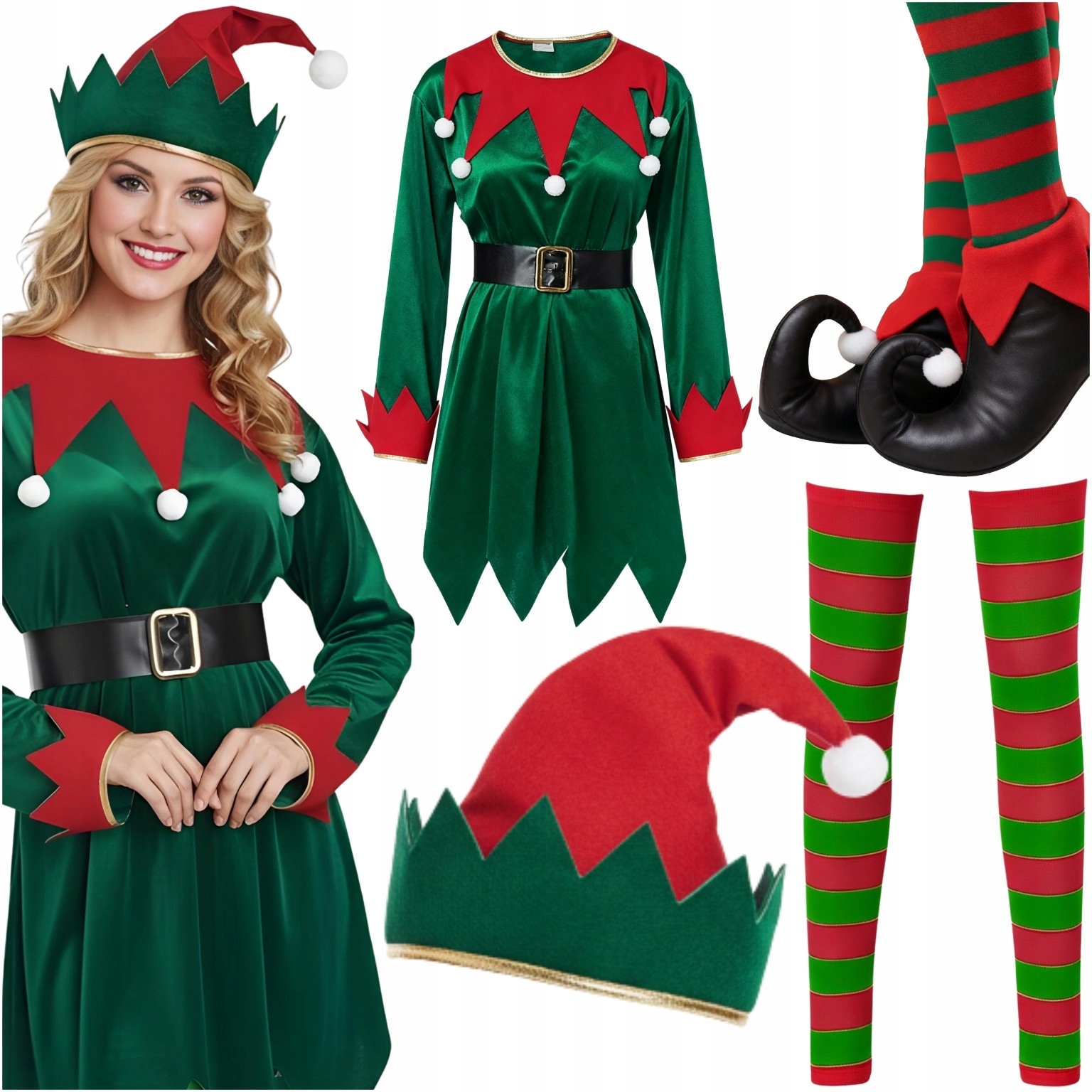 ЭЛЬФ ОДНОРАЗОВЫЙ НАРЯД ЭЛЬФА КОСТЮМ ЛЕДИ ЭЛЬФ ТУНИКА ПОМОЩНИК САНТЫ