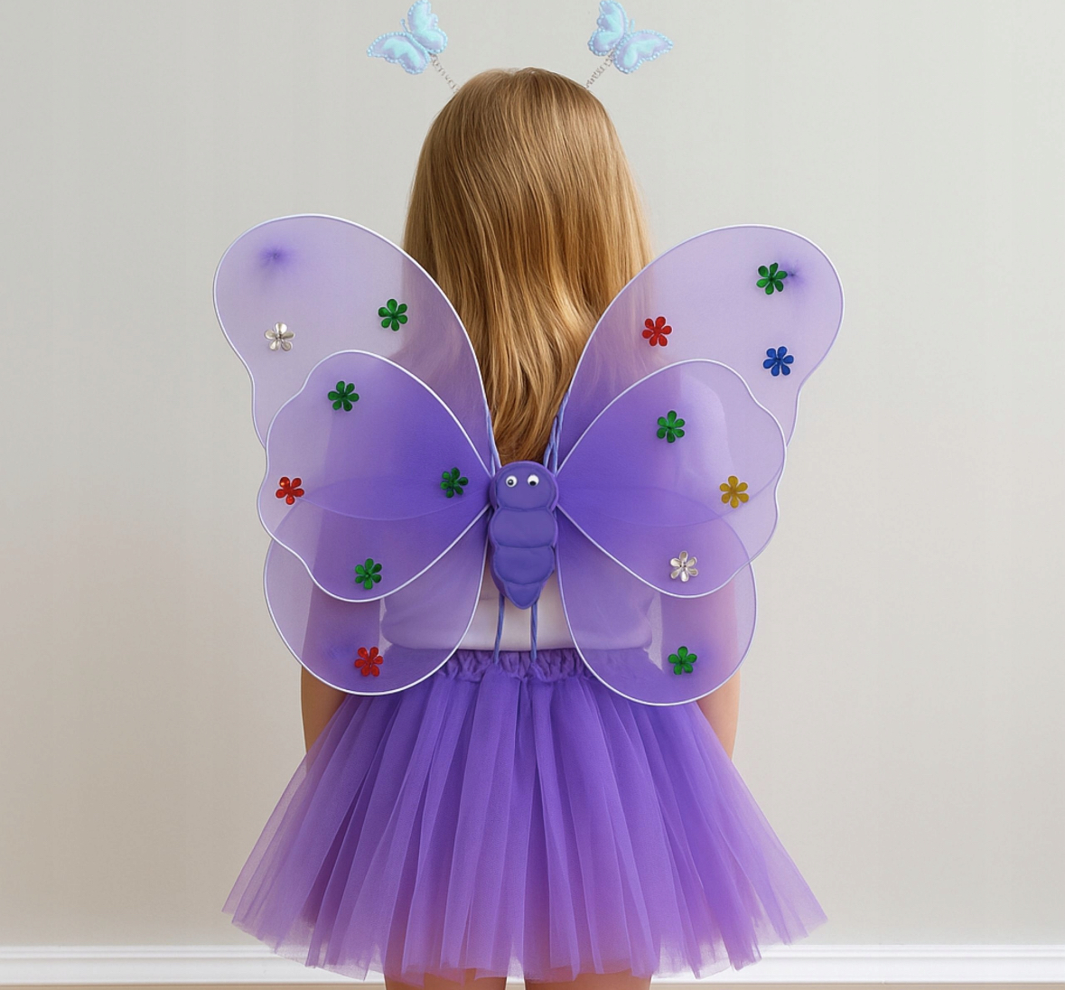 Полный набор 4in1 - крылья, юбка для пачки, повязка на голову и скипетр - все, что вам нужно, чтобы превратить в сказочную или бабочку.