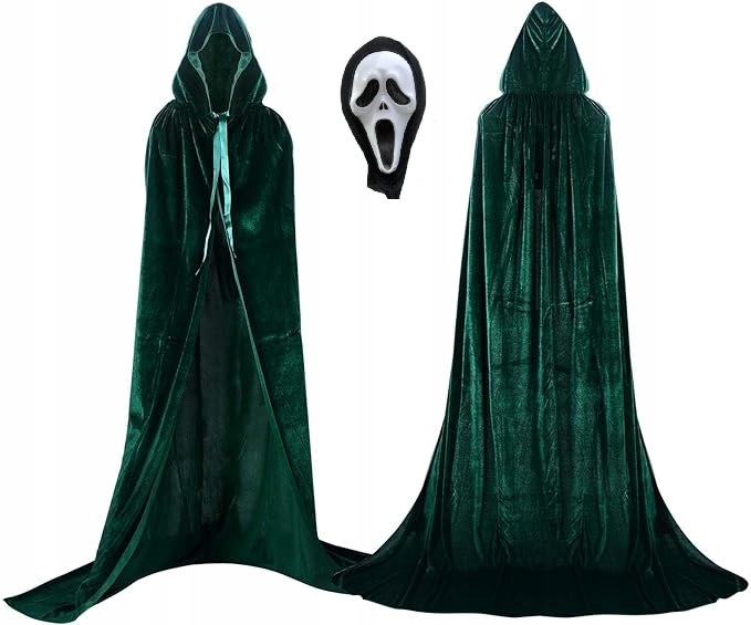 КОСТЮМ НА ХЕЛОВІН СТРАЖЕННЯ DEATH BLACK CAPEA ВЕЛЮРОВЕ ПАЛЬТО + МАСКА КРИК