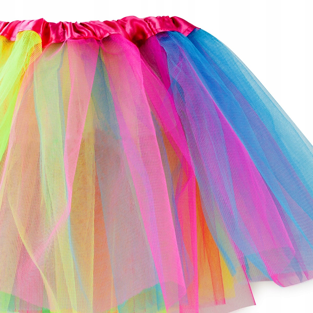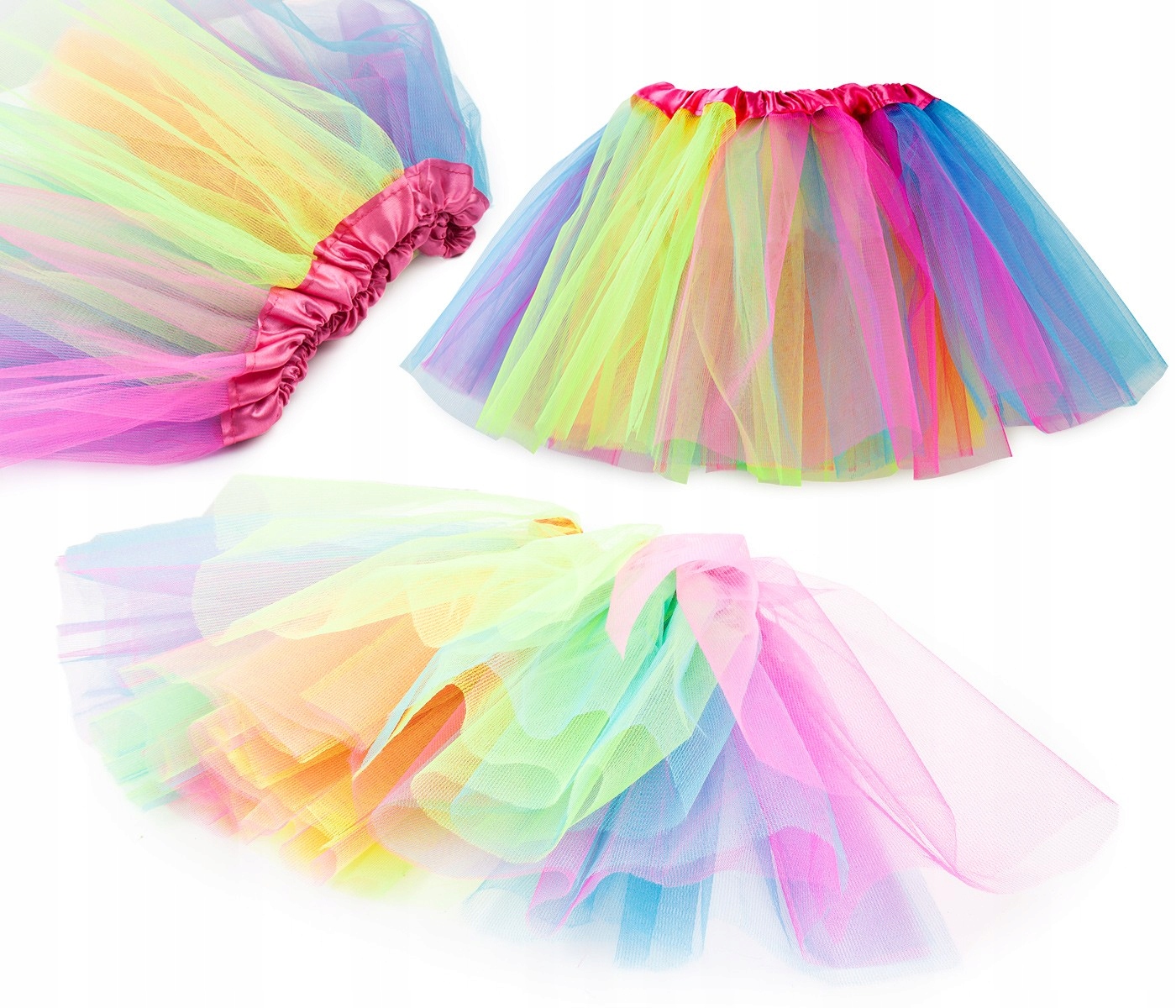 Юбка состоит из тюлевых полосок разных цветов. На талии имеется резинка на атласной ленте. Он прекрасно сидит и работает во время танца.