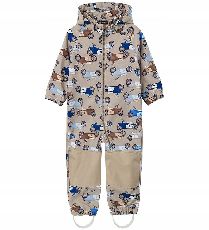 Костюм из софтшелла Nice Name It пыльно-бежевого цвета с принтом в виде крутых ретро-автомобилей по всей поверхности.