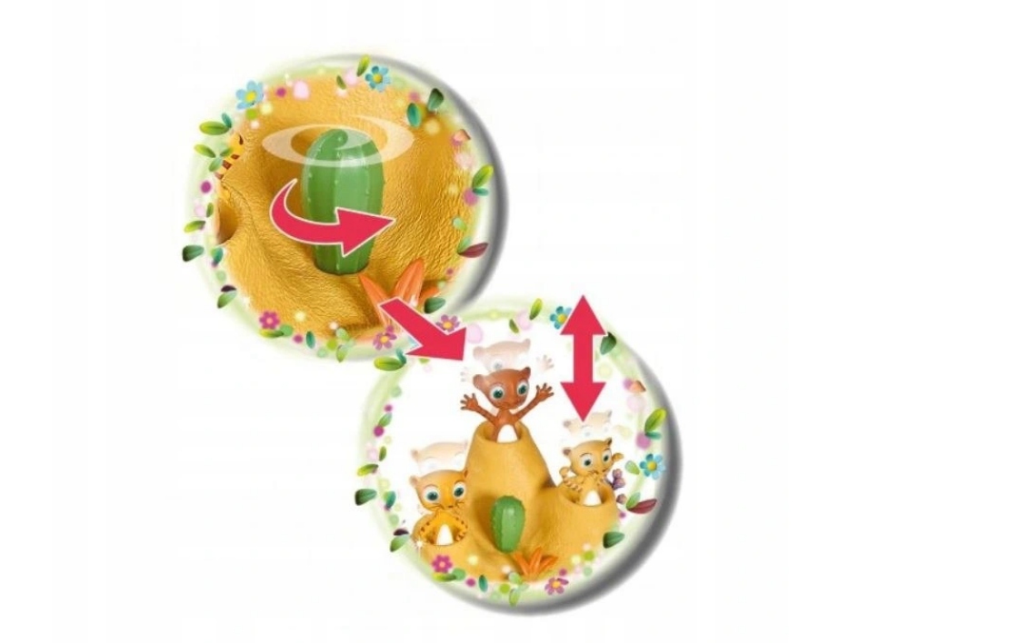 Самая большая привлекательность игрушки в том, что когда вы поворачиваете центральный кактус, животные выпрыгивают один за другим!