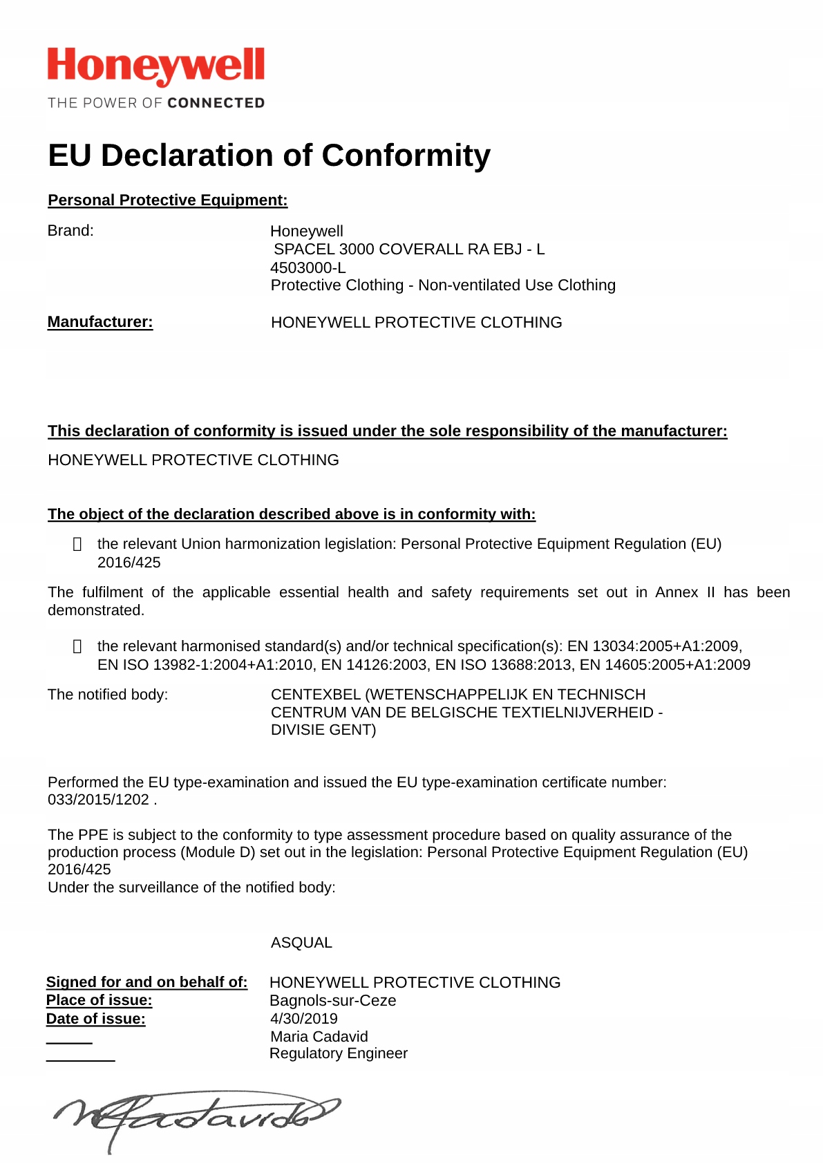 КОСТЮМ ЗАЩИТНЫЙ SPACEL 3000 AP RA EBJ/ HONEYWELL